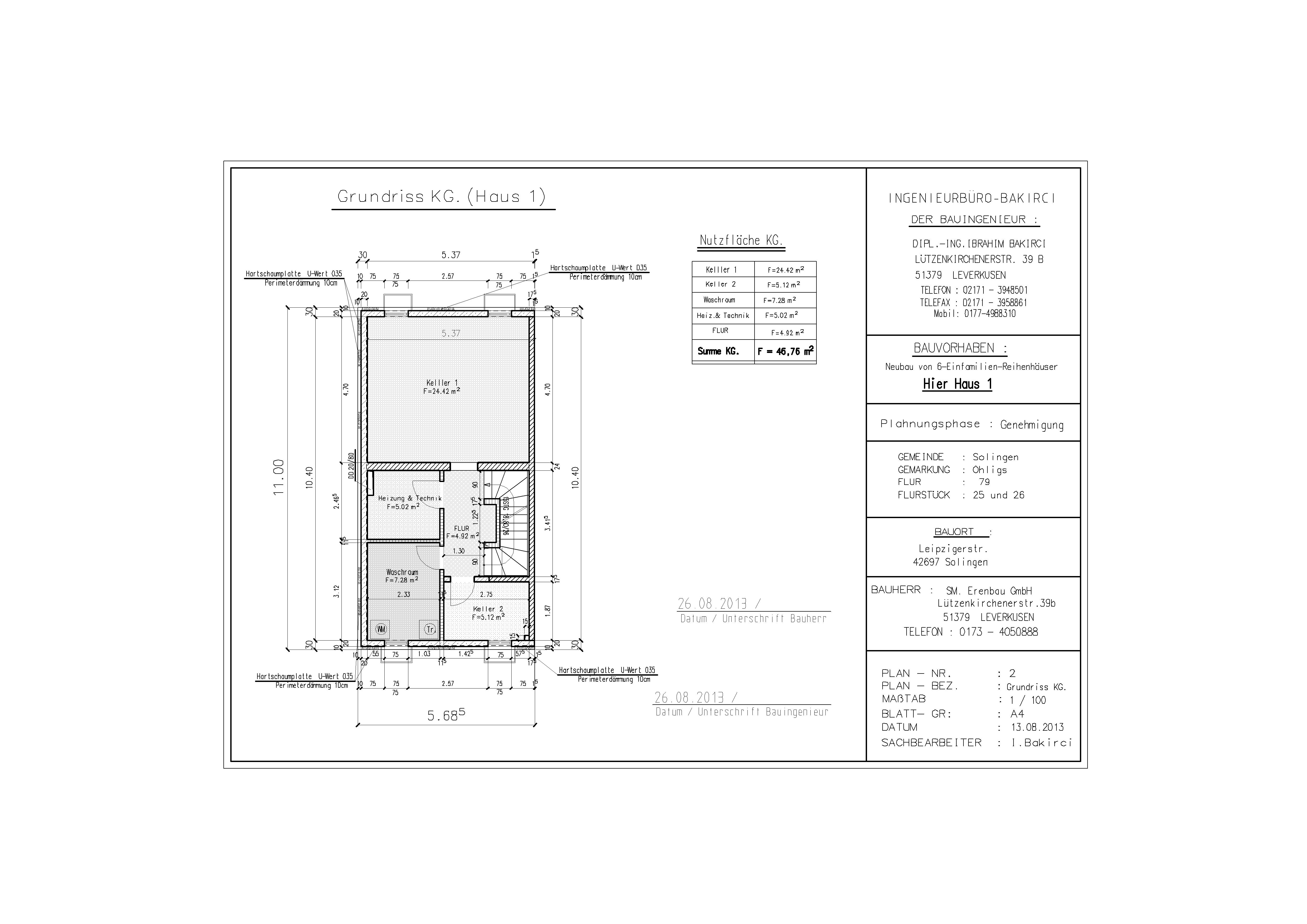 Genehmigungsplanung, Ausführungsplanung, Statik inkl. Bewehrungspläne, Wärme & Schallschutzberechnungen, Bauleitung und Ausführung Schlüsselfertig Objekt in Langenfeld: