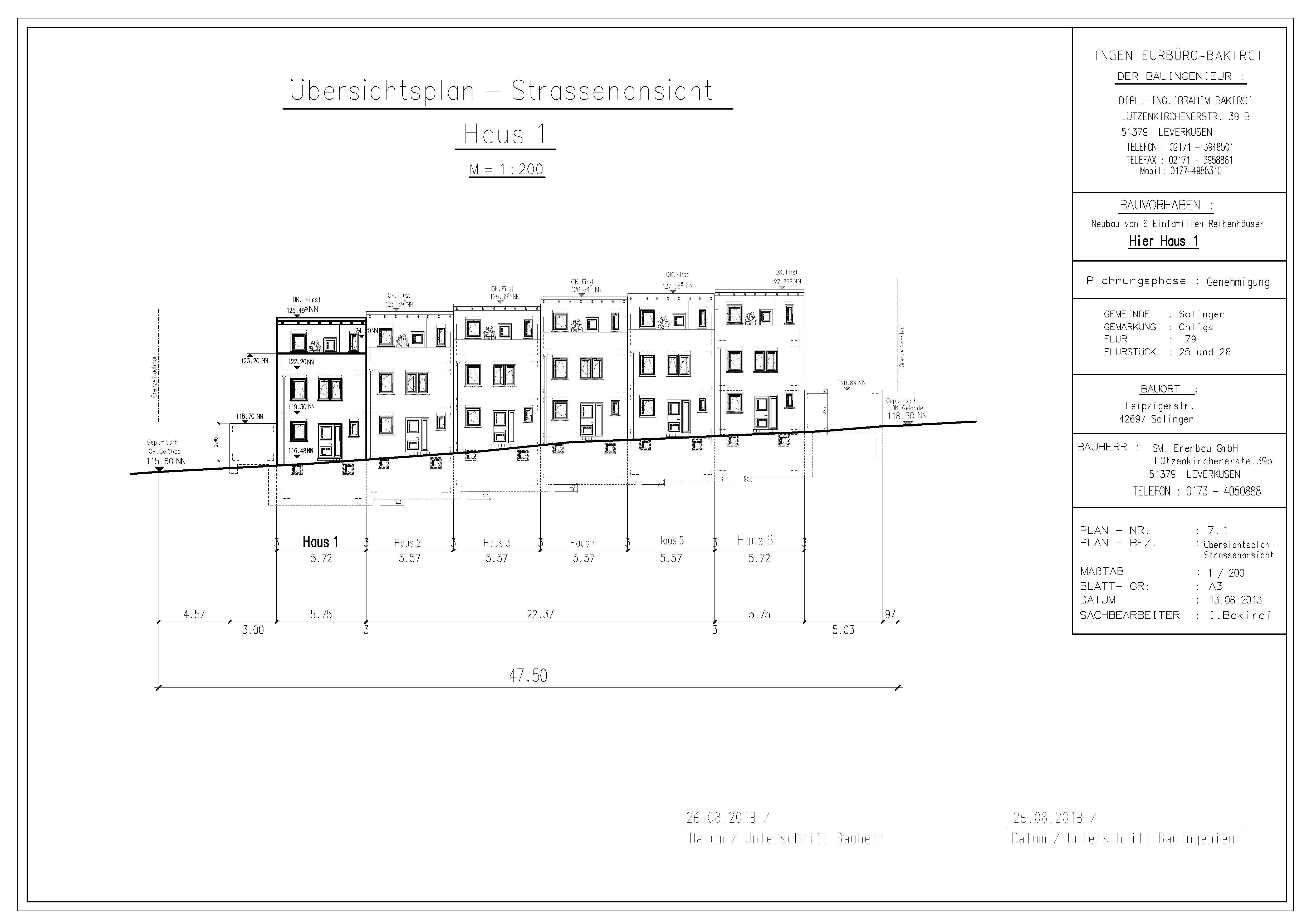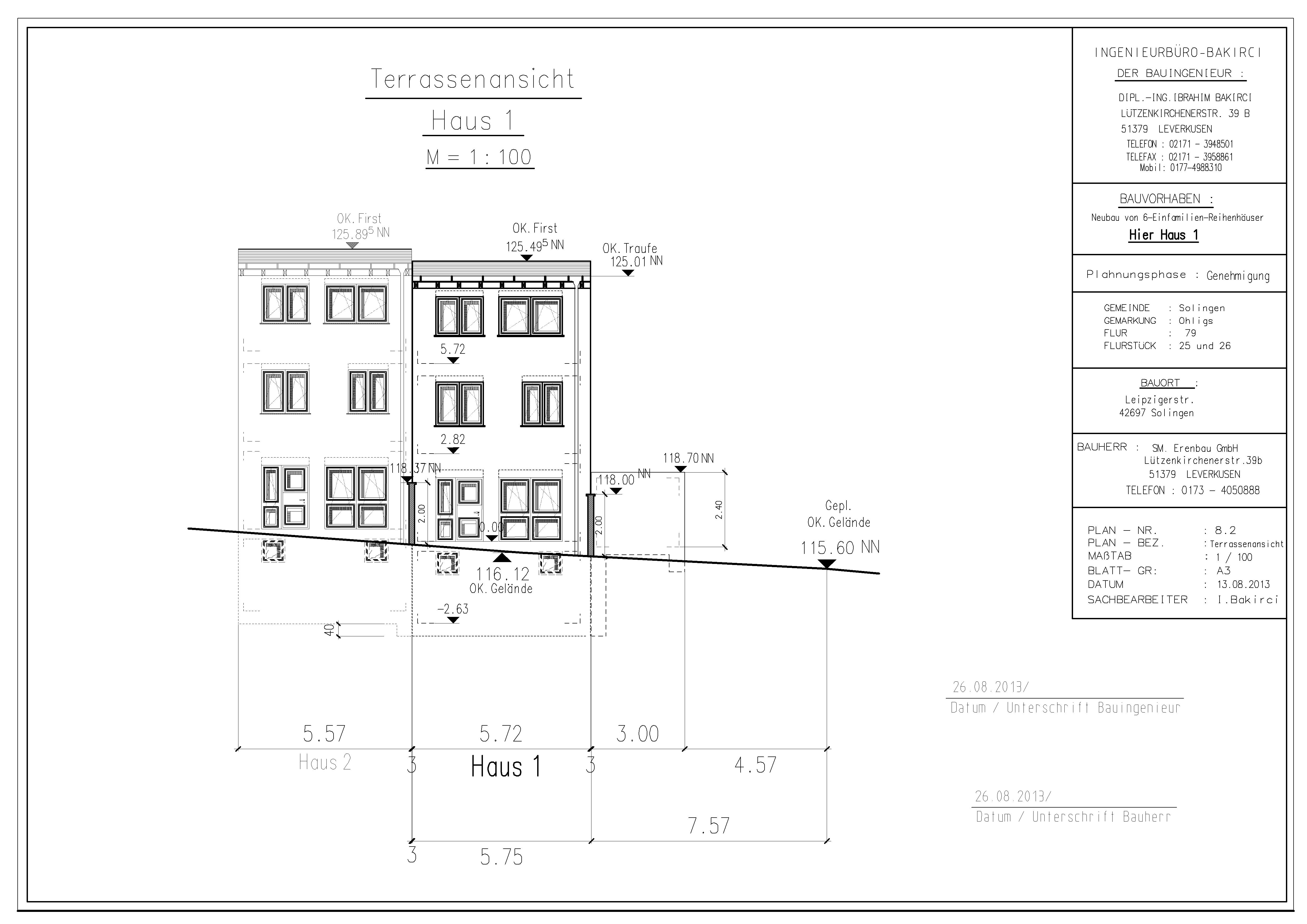 Genehmigungsplanung, Ausführungsplanung, Statik inkl. Bewehrungspläne, Wärme & Schallschutzberechnungen, Bauleitung und Ausführung Schlüsselfertig Objekt in Solingen: